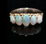 A stunning Edwardian 18ct yellow gold natural solid opal 5 stone ring