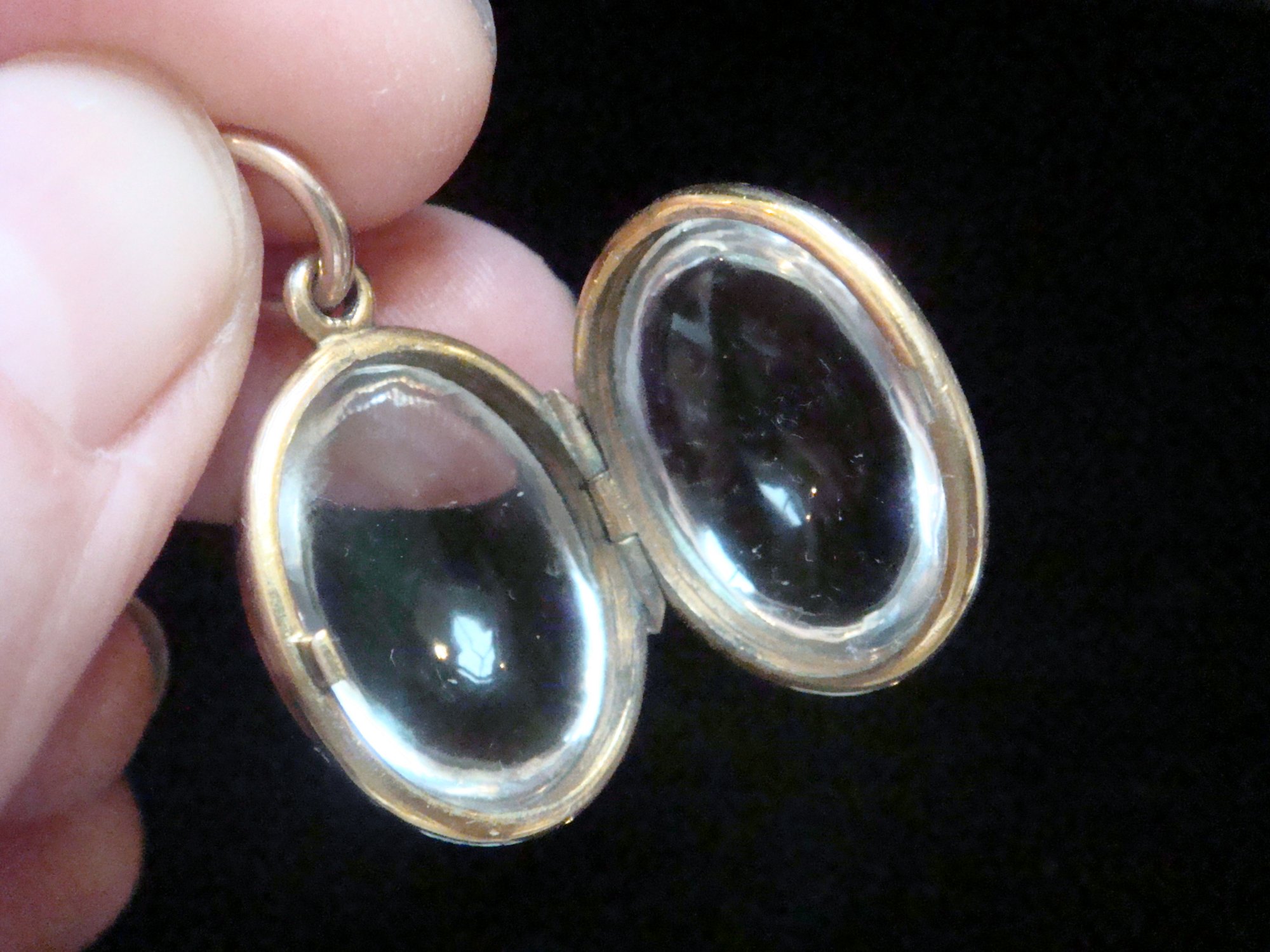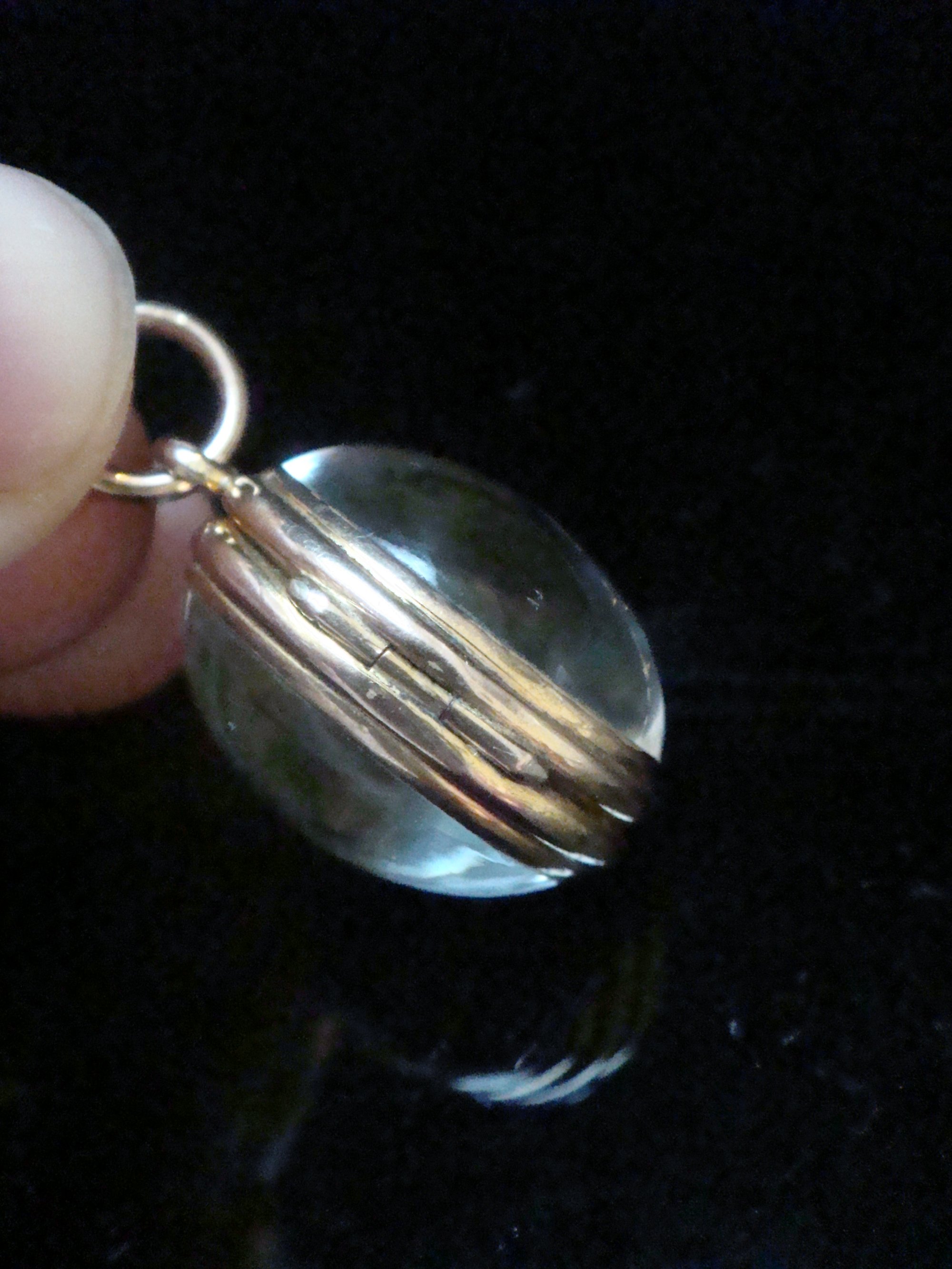 Edwardian 9ct rolled gold heavy thick rounded pools of light crystal locket